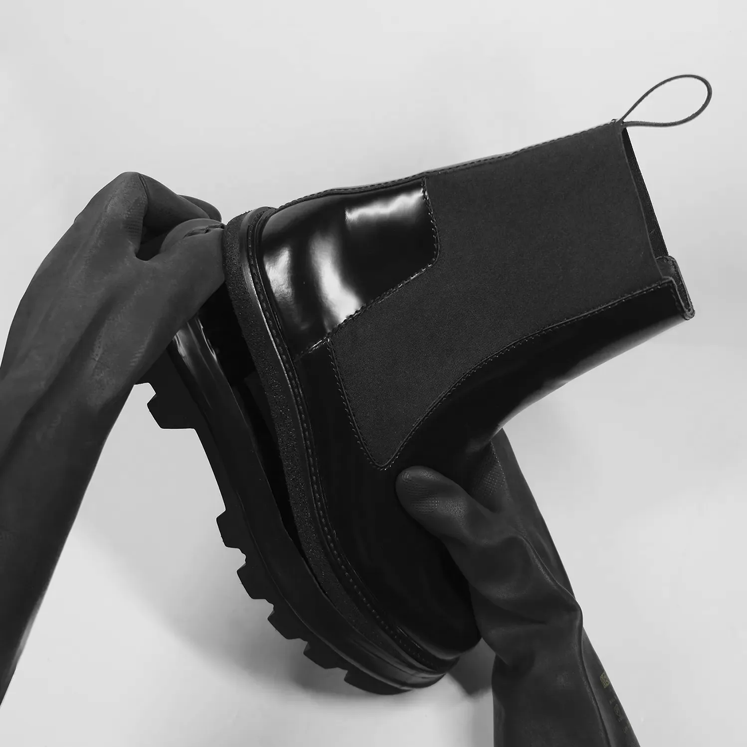 Midway through 2025, I asked Kevin Gan Yuen, the mastermind behind San Francisco Black Metal/Power Noise project Sutekh Hexen if he'd be into developing a boot project with us. Kevin pitched us a duck boot look, the desire for a dark silhouette and a competent design. Everything starts with a last, it dictates the overall look, the proportions, the volume and shape of the toe that form the basis of any shoe design, but in this case the critical component is a unique last-less sole: an early 20th century Maine inspired moulded behemoth, in natural rubber, which only allows for a rare, dedicated machine to carry out the stitch. After many tweaks in prototyping we got to a very good first pair, which exceeded our expectations, and was sent out to Kevin.
